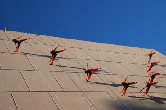 The beautiful building dancing (video below) is by Project Bandaloop, a San Francisco-based dance company founded by Amelia Rudolph. Their repertoire includes natural landmarks such as Yosemite as well as very tall buildings around the world.