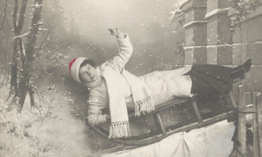 Managing expectations is a good idea when it comes to present giving. This wrapping paper apologises in advance for the present inside. Available to download free from The Guardian this this week are wrapping papers designed by well-known artists. ‘Sorry’ is by Jeremy Deller. Below, Tacita Dean’s design is based on an image of a woman looking very uncomfortable on a sledge from a 100 year old German postcard, and below, is Julian Opie’s contribution.